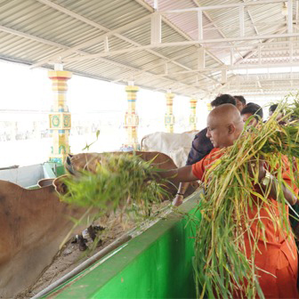 Devotees can contribute cattle feed and feed cow by self to be receptive to the grace of lord. for more information