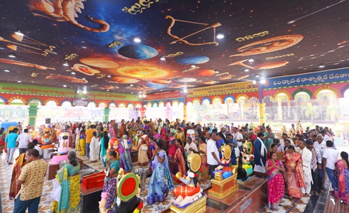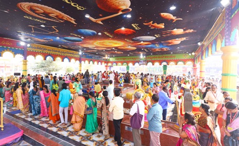 The world’s first cosmic Navagraha temple with 4-ft Navagraha, 28 Nakshatra, and 12 Rashi idols consecrated together at Ramaneswaram.