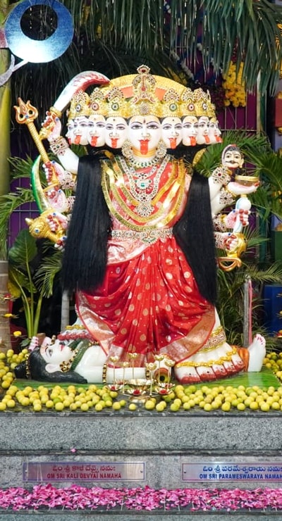 Sri Kali Mahadevi is the first incarnation of Sati Devi in Dasa Mahavidya. Goddess Kali represents the nature of time, the source for time. She is the sole means for seekers to discover true wisdom. In a nutshell, she is a manifestation of Brahman and is Lord Shani’s presiding deity. One who meditate and had Darshan of Sri Kali Mahadevi will have their sins completely destroyed.